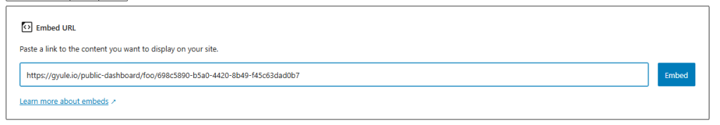 Note: you must copy “Public dashboard link” not the “Embed dashboard code” Gutenberg will then take care of transforming it into an iframe.