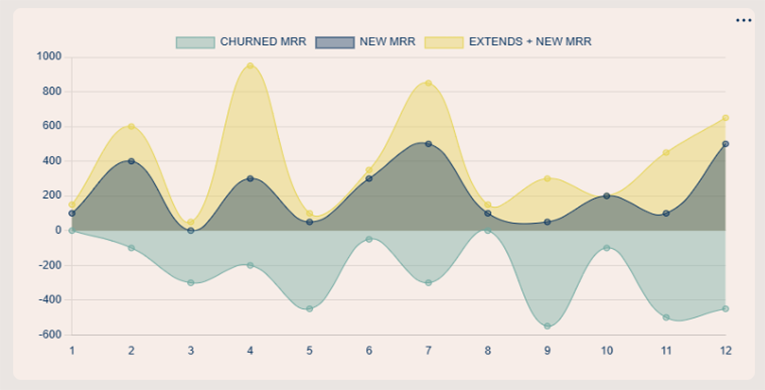 To better analyze New MRR, it is important to cross-reference the data with Exapnsion MRR and the churn rate (we’ll see this later). To visualize this information, we can use a stacked area chart.